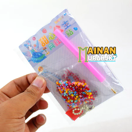 – Stiker Berlian ini di lengkapi dengan 1 pen, 1 Stiker, Lem, 1 Bungkus manik-manik dan Gantungan Sebagai hiasan di Kunci bisa juga sebagai pernak pernik hiasan tas dsb.