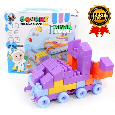 9. Detail Produk : Mainan edukasi square building block berisi 120 pcs block berisi 4 block mobil, dan 16 roda.