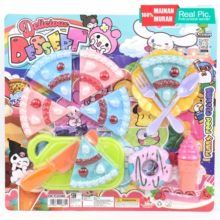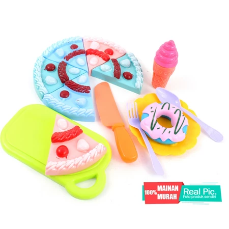 9. Detail Produk : Mainan delicious dessert berisi 6 potong kue tart,1 pisau,1 talenan,1 donut,1 ice cream,sendok & garpu,1 piring.